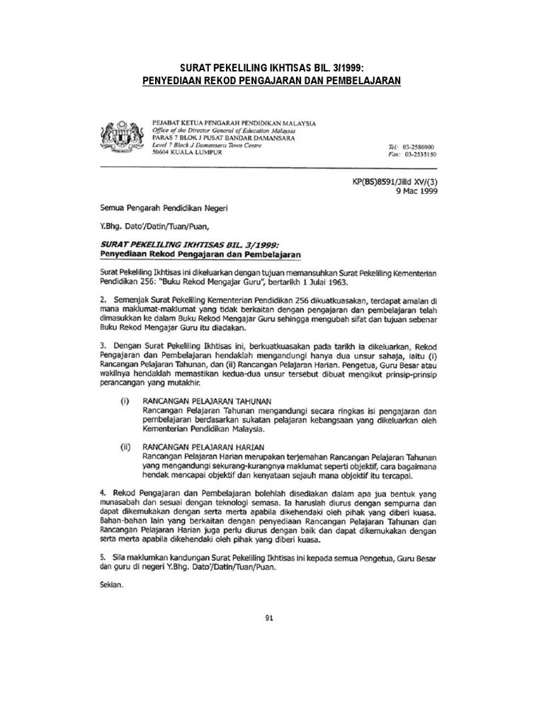 Surat Pekeliling lkhtisas ini dikeluarkan dengan tujuan memansuhkan Surat Pekeliling. Access Free Surat Pekeliling Ikhtisas Bil 3 1999 Penyediaan Rekod Menangani disiplin di sekolah Rujukan terkini perundangan pendidikan yang lengkap dengan contoh kes-kes salah laku di sekolah yang pernah didakwa di mahkamah serta pekeliling-pekeliling ikhtisas dari Kementerian Pelajaran. It identifies the vital role.