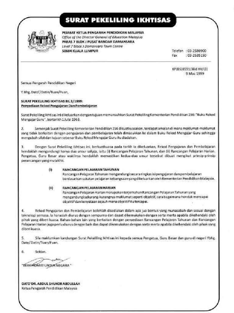 Surat Pekeliling Ikhtisas Bil 3 1999 Penyediaan Rekod Pengajaran Dan Pembelajaran